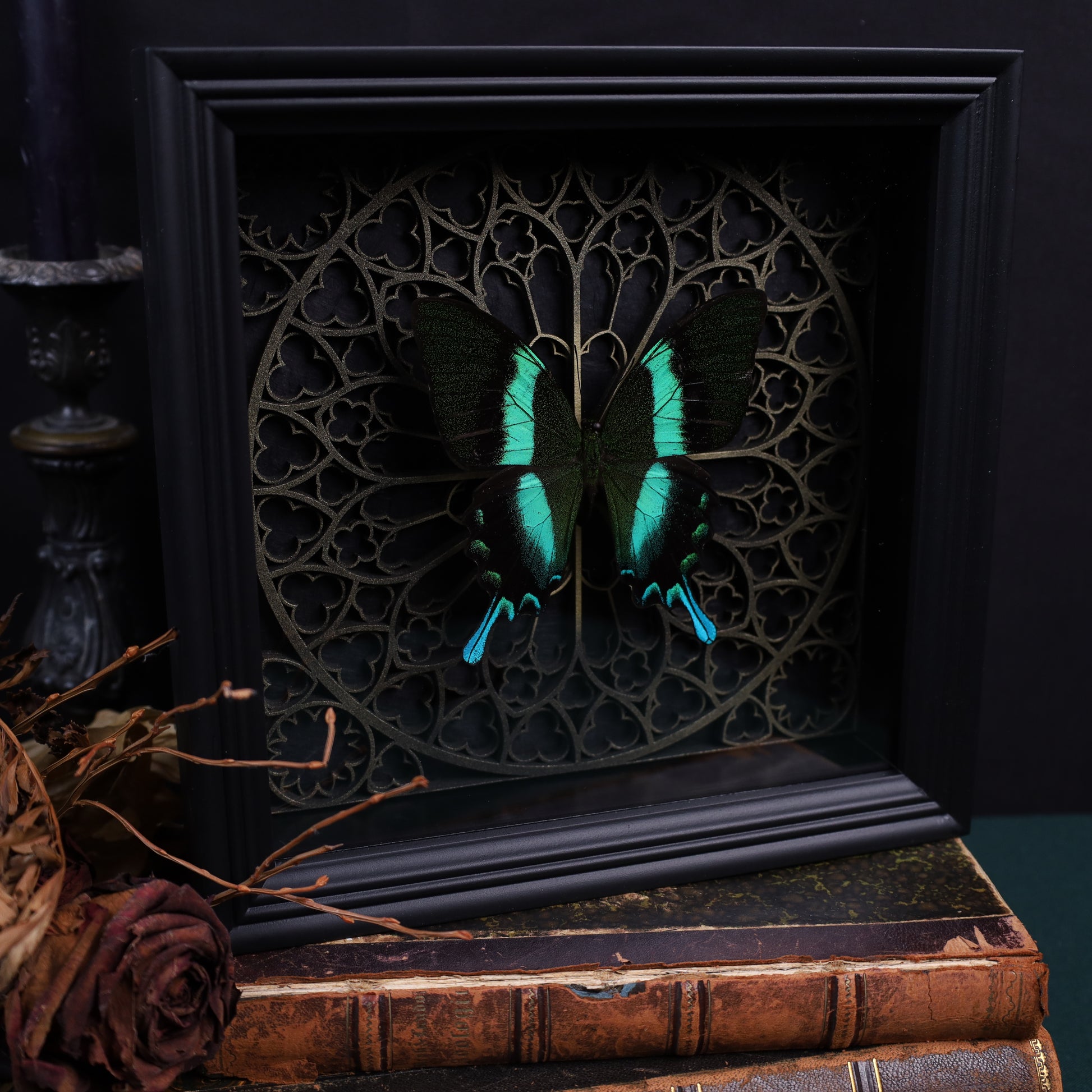 Framed Papilio blumei — a true work of natural art in Baroque style