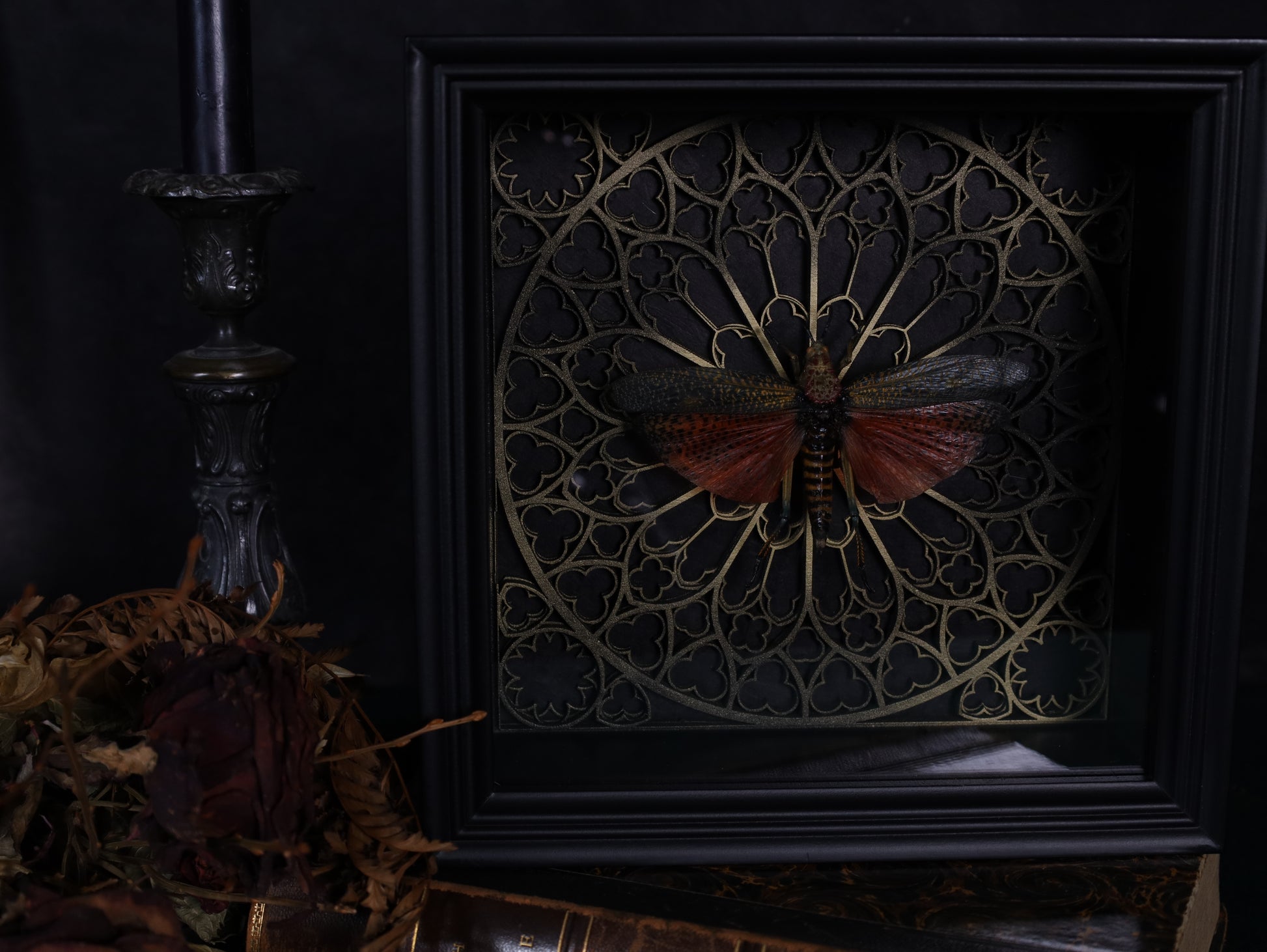 Framed Phymateus saxosus — a true work of natural art in Gothic style