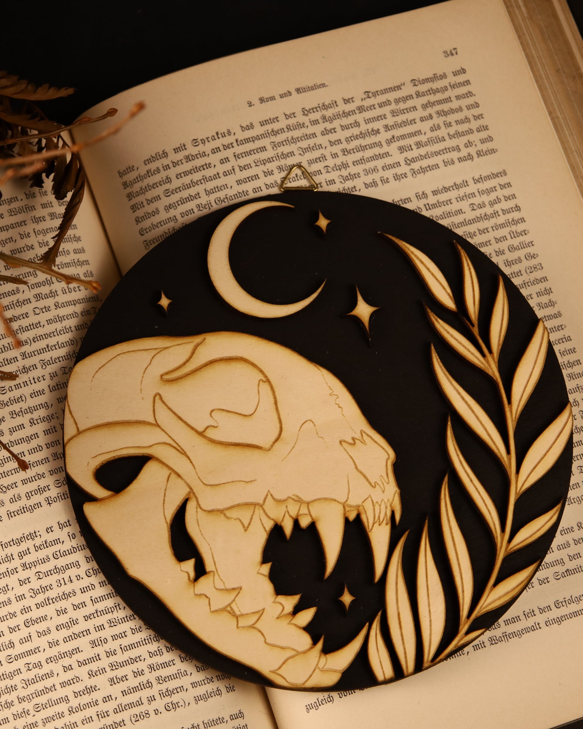 Give your home a unique touch with our wooden cat skull – an artistic wall decoration that combines nature and craftsmanship. Perfect as a gift, for witchcraft enthusiasts, or as an extraordinary highlight in your collection of curiosities.